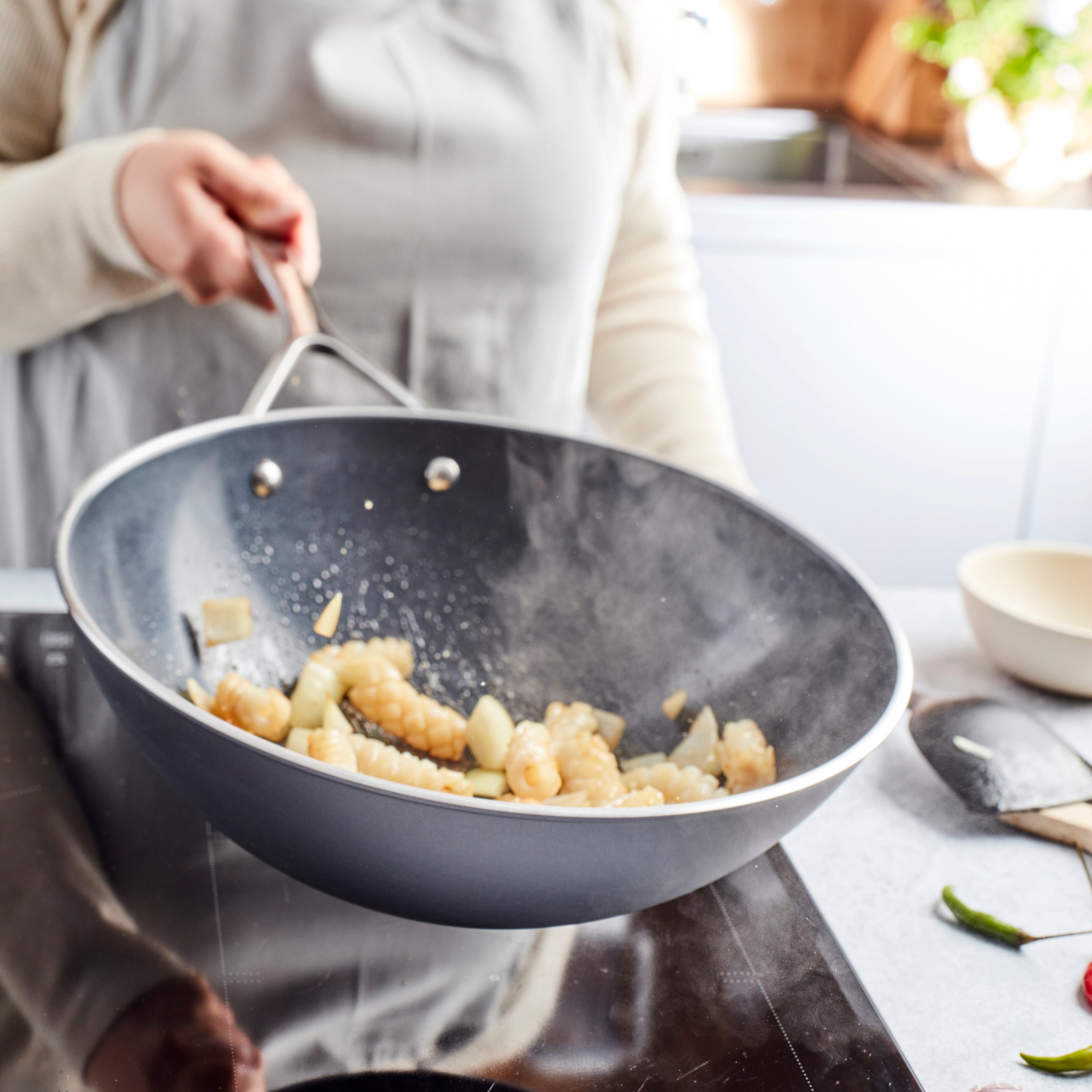 Demeyere AluPro 12" Ceramic Nonstick Flat Bottom Wok