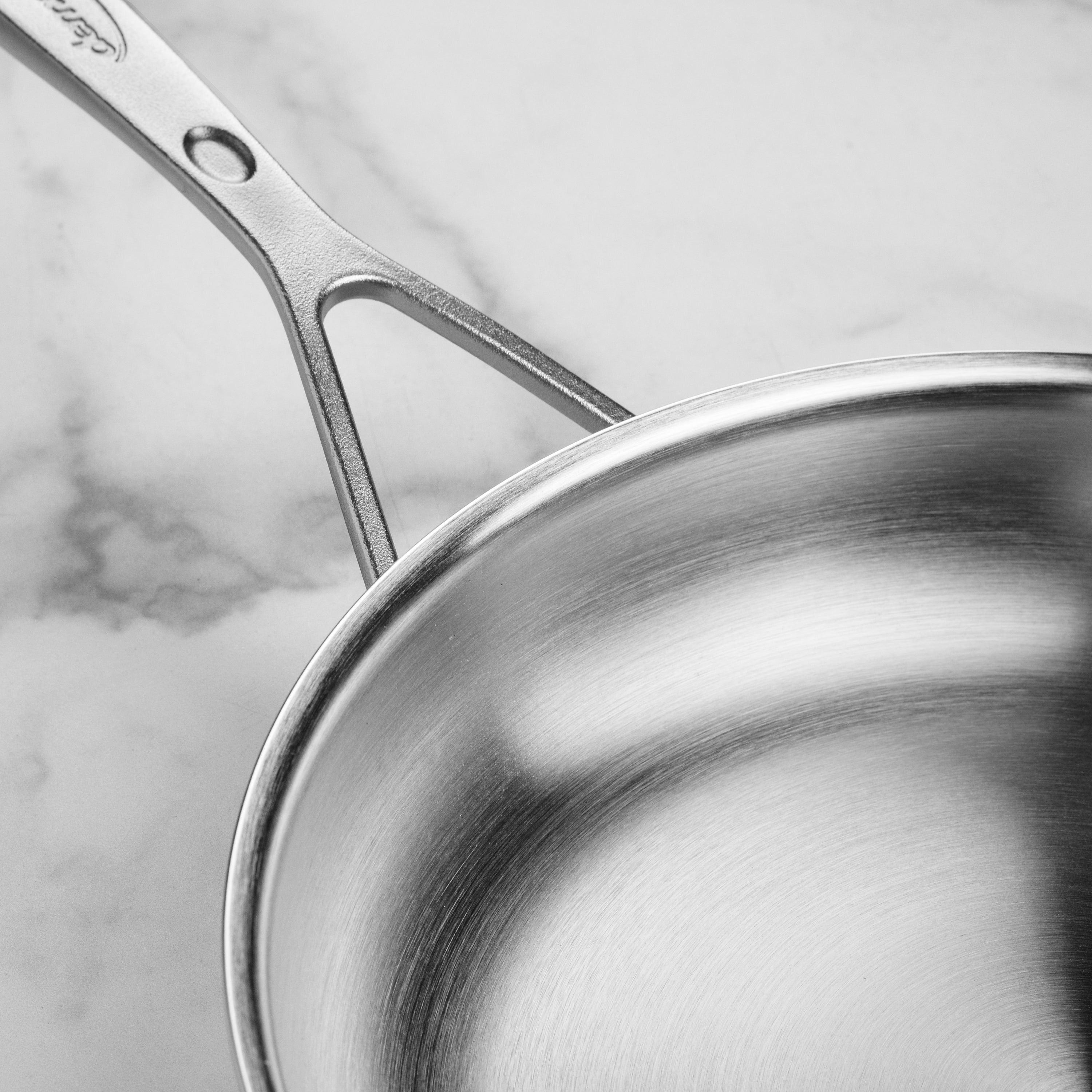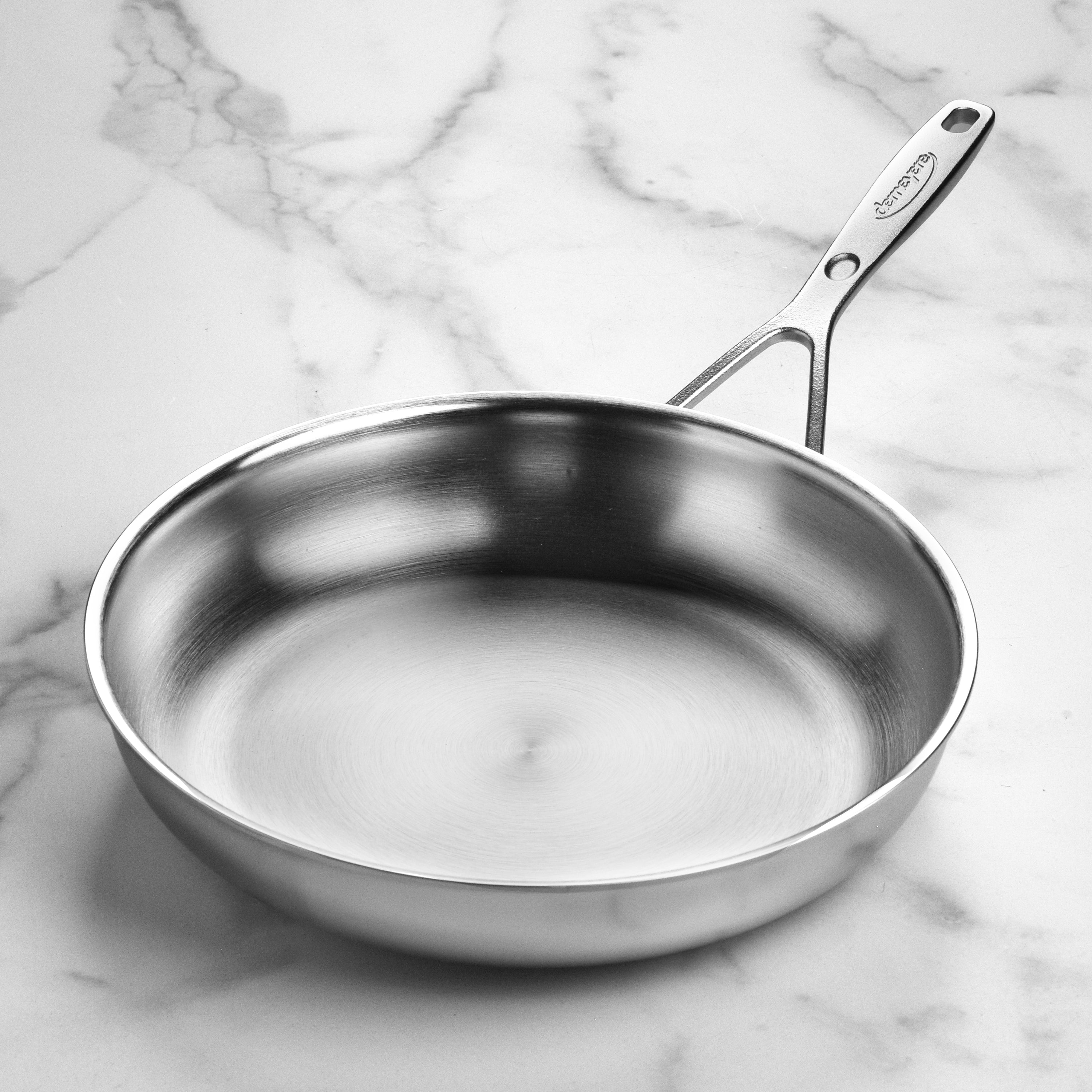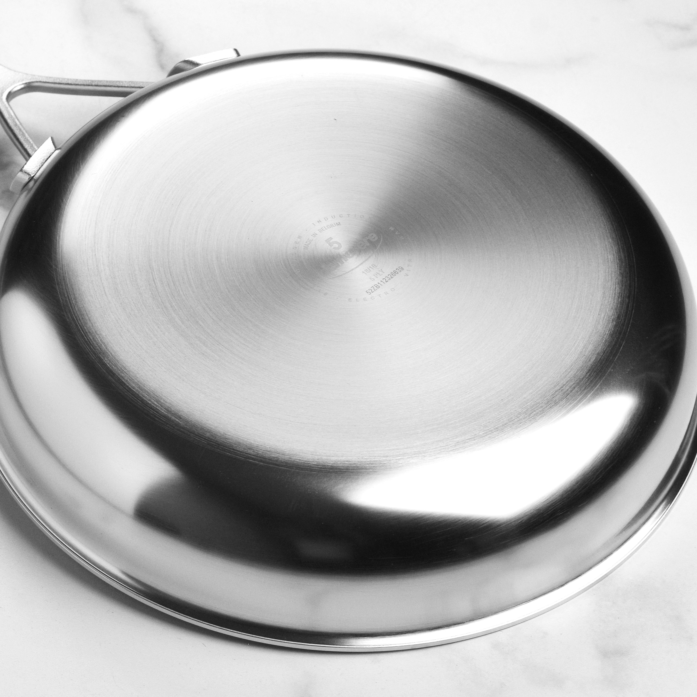 - 5-ply stainless steel construction with thick aluminum core from rim to rim for even heat distribution