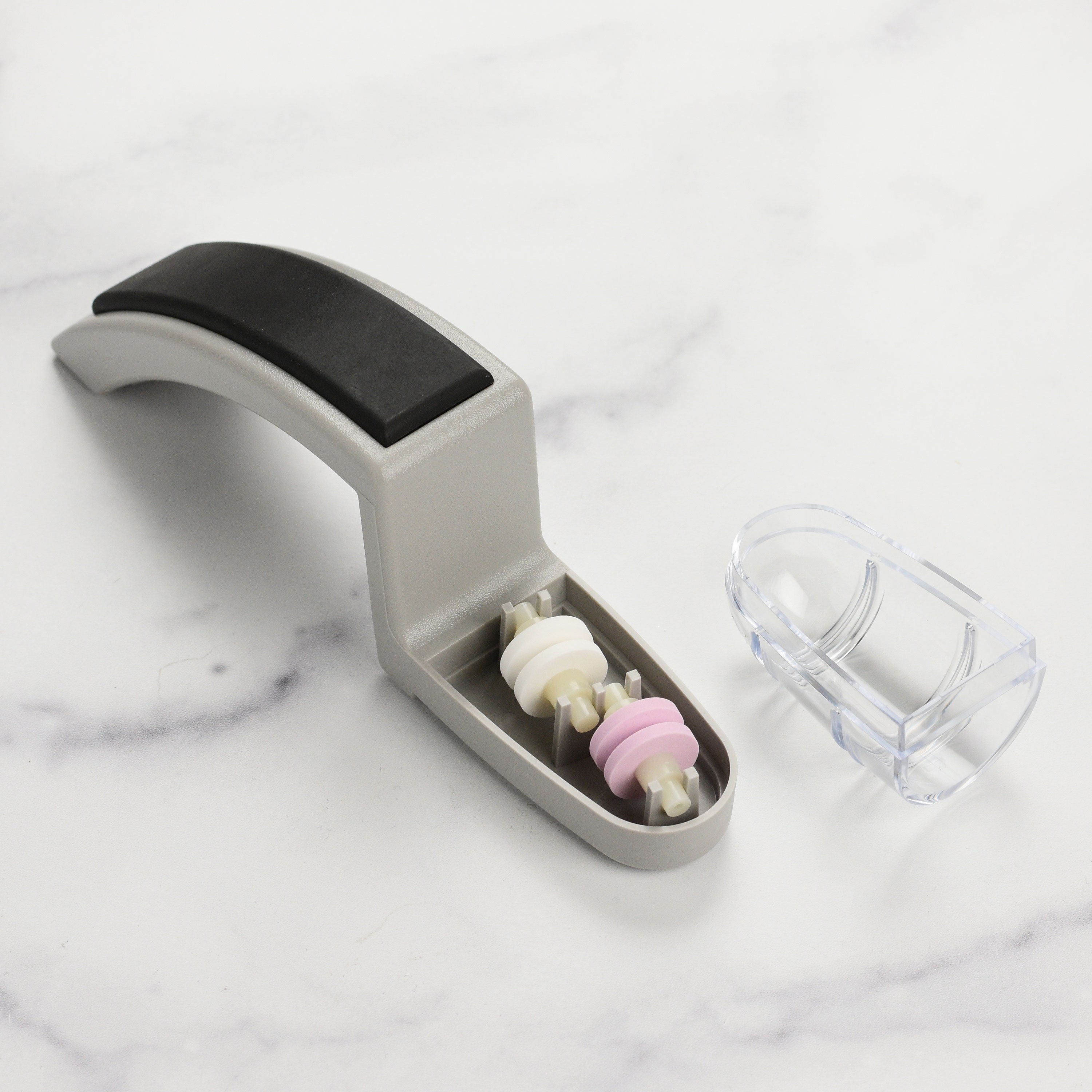 - Stainless steel hygienic handle with signature dimple pattern offering a comfortable, slip-resistant grip