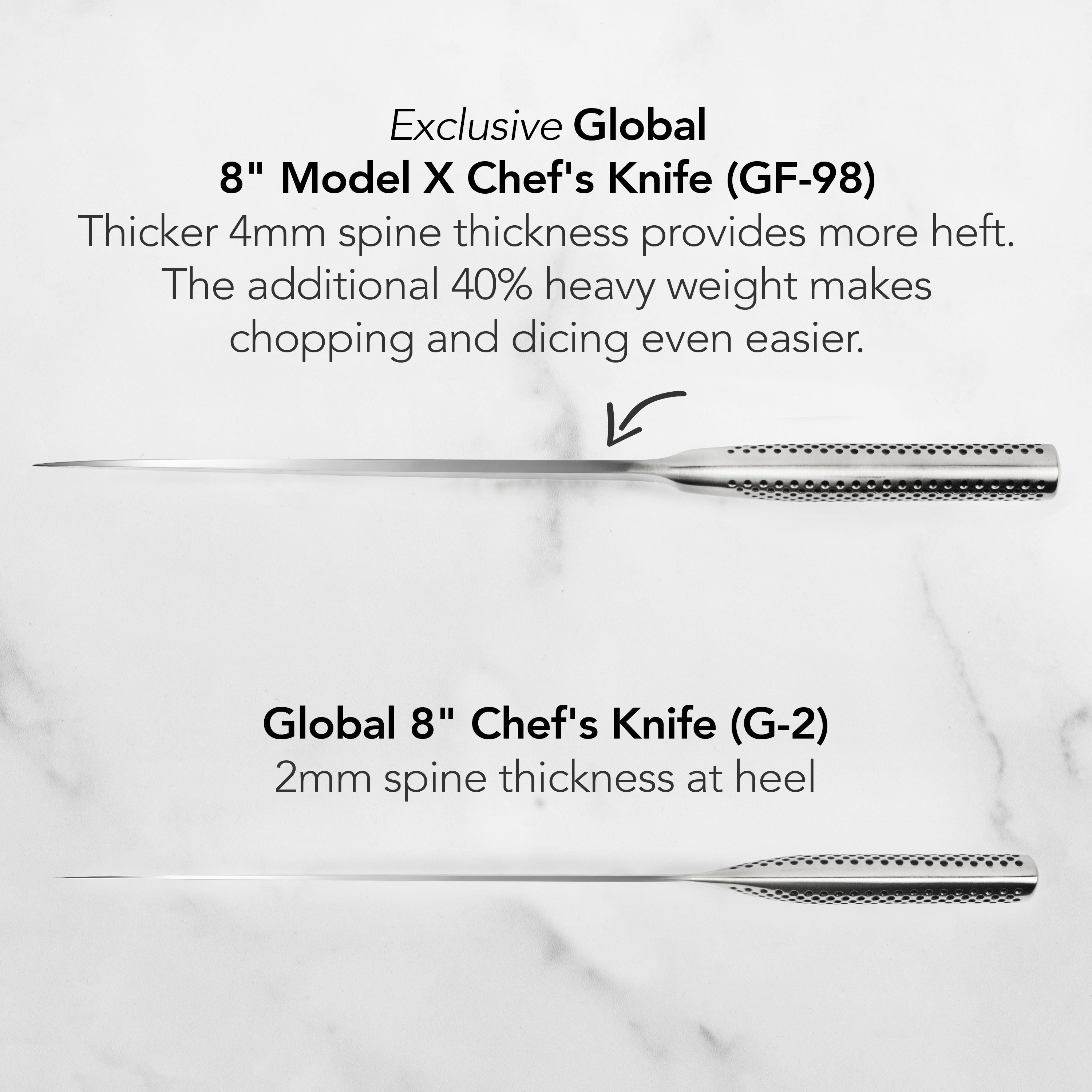 - Heavy duty, extra thick spine, twice as thick as traditional Global Knives
