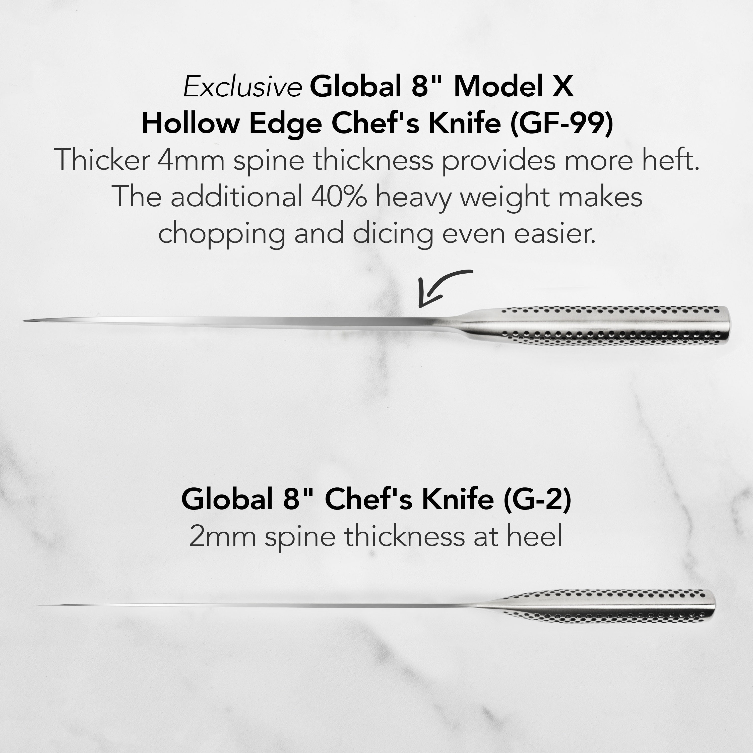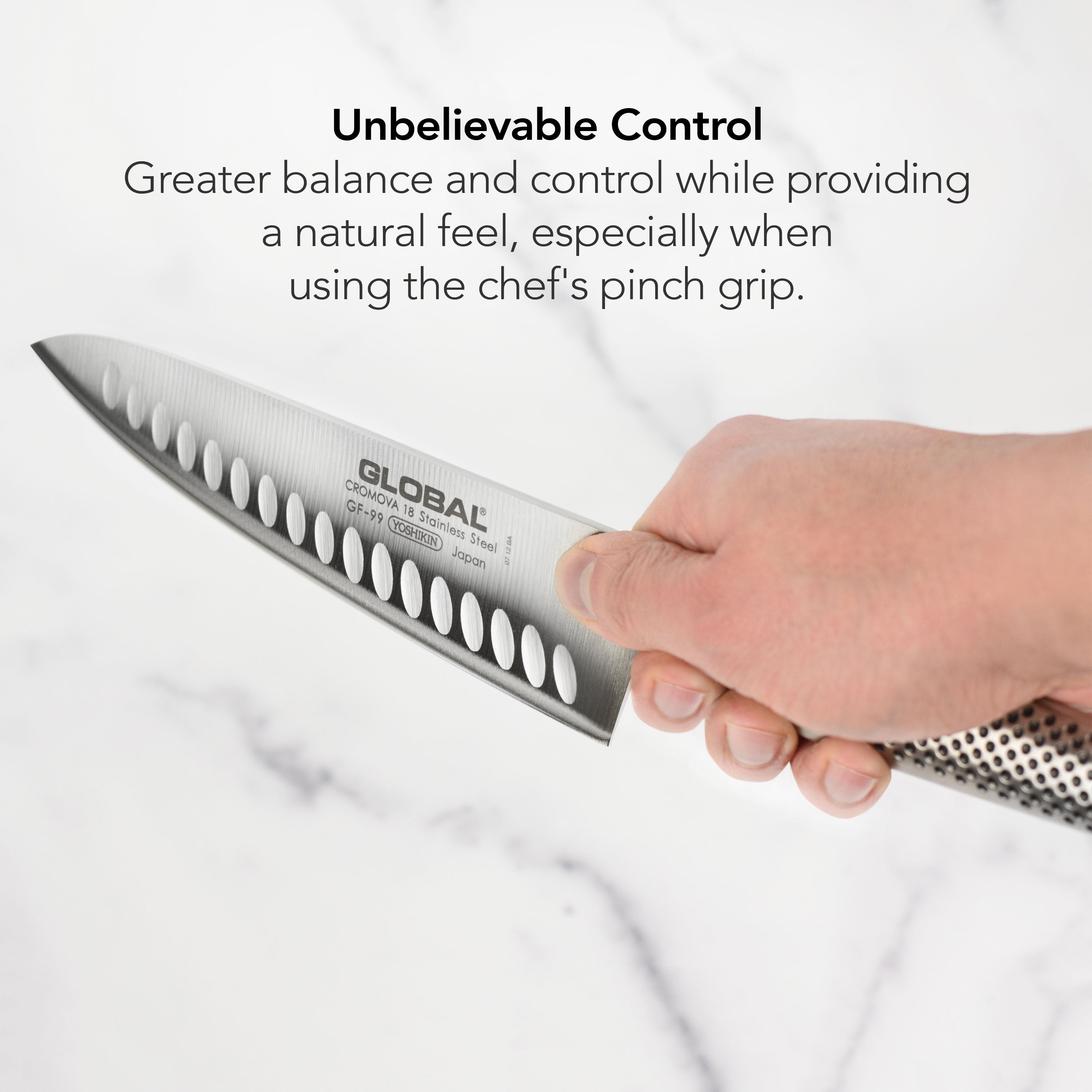 - Ice-tempered, Rockwell Hardness of 56-58° holds a unique razor-sharp convex edge longer
