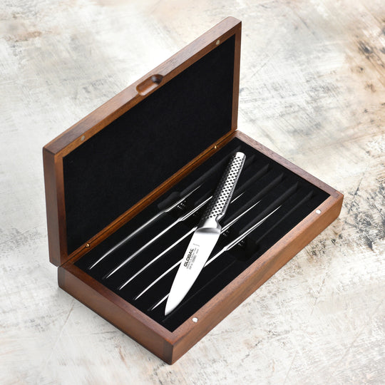 Global 6 Piece Fine Edge Steak Knife Set with Case