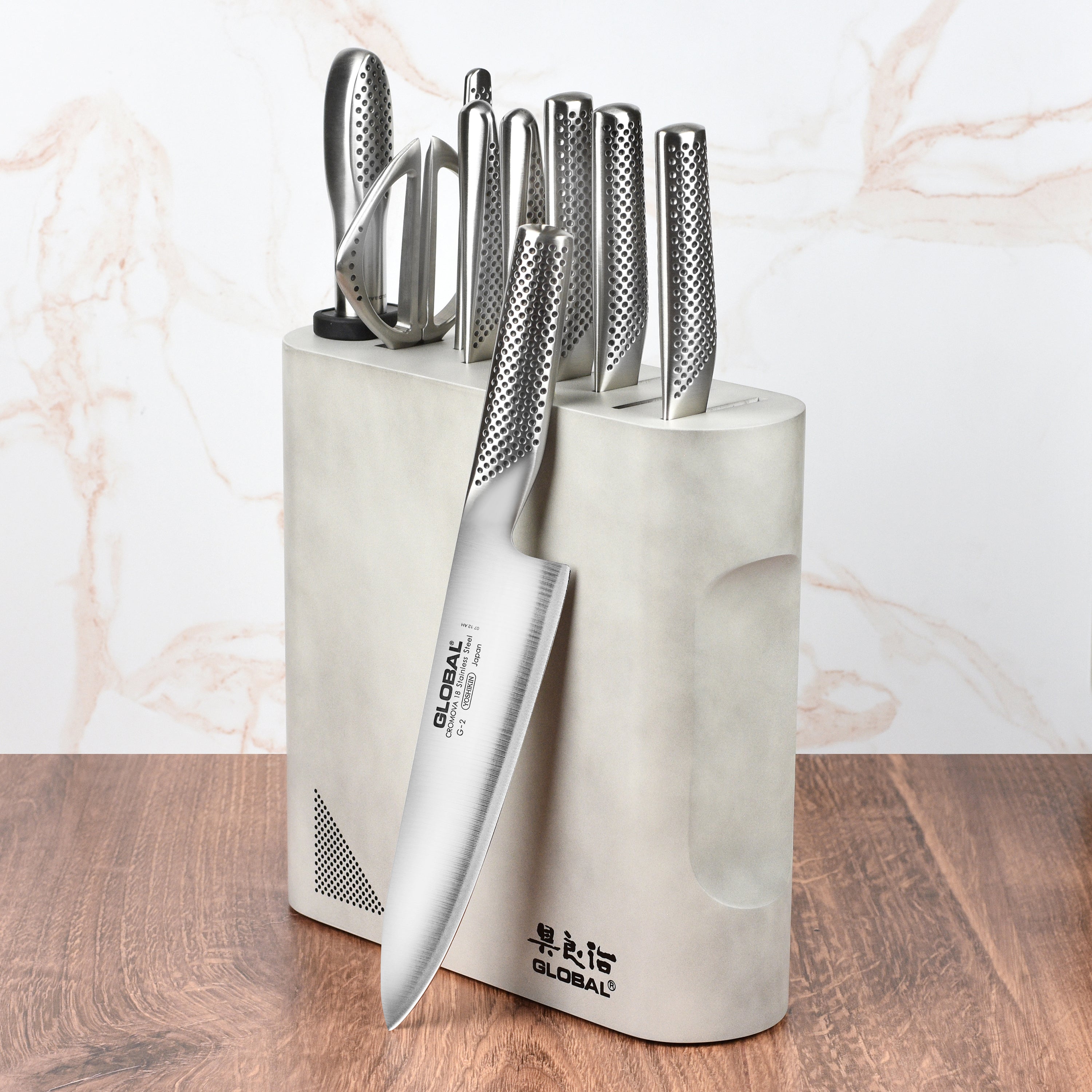 Global 10 Piece Kanpeki Knife Block Set, Cement Gray
