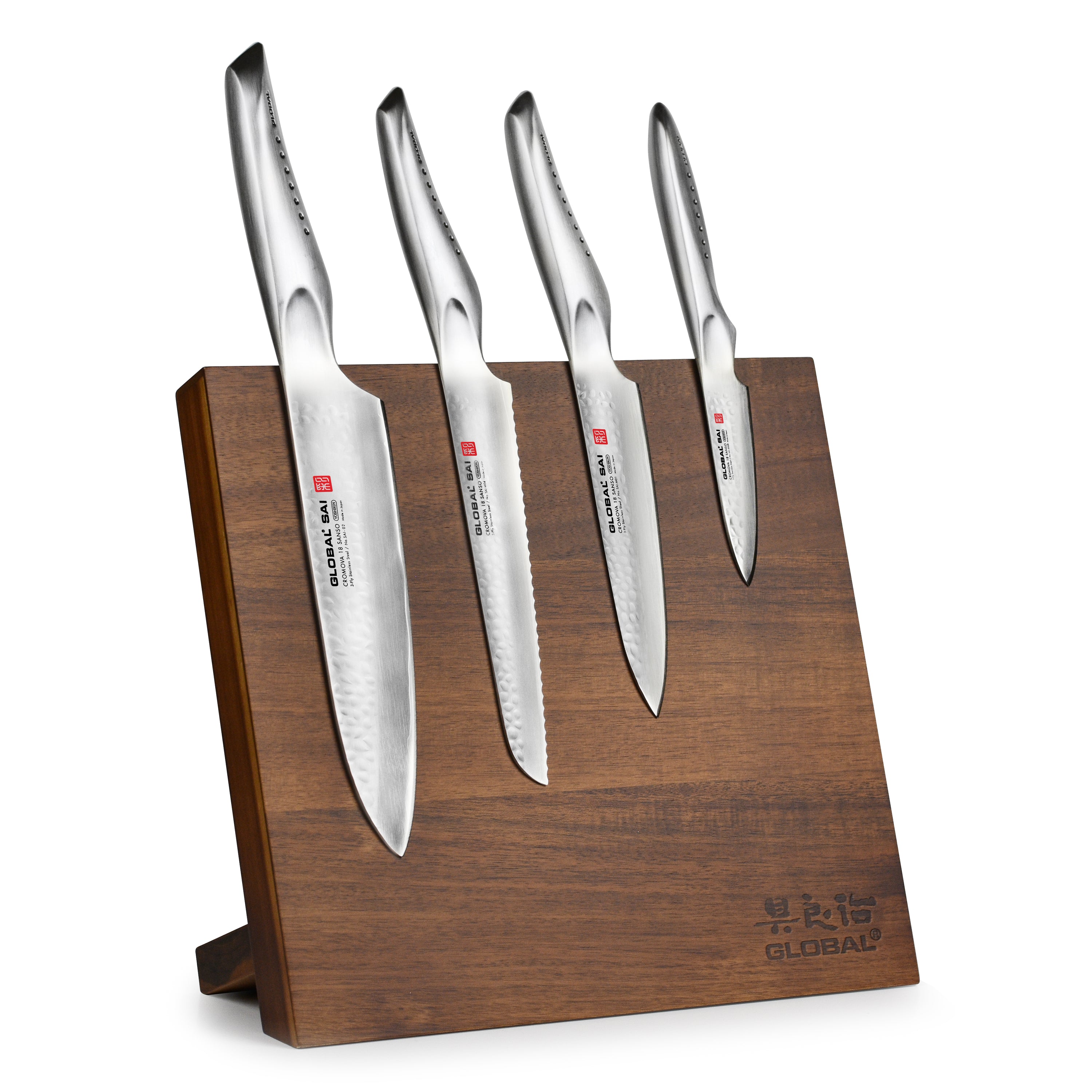 Global Sai 5 Piece Magnetic Easel Knife Set, Acacia Block