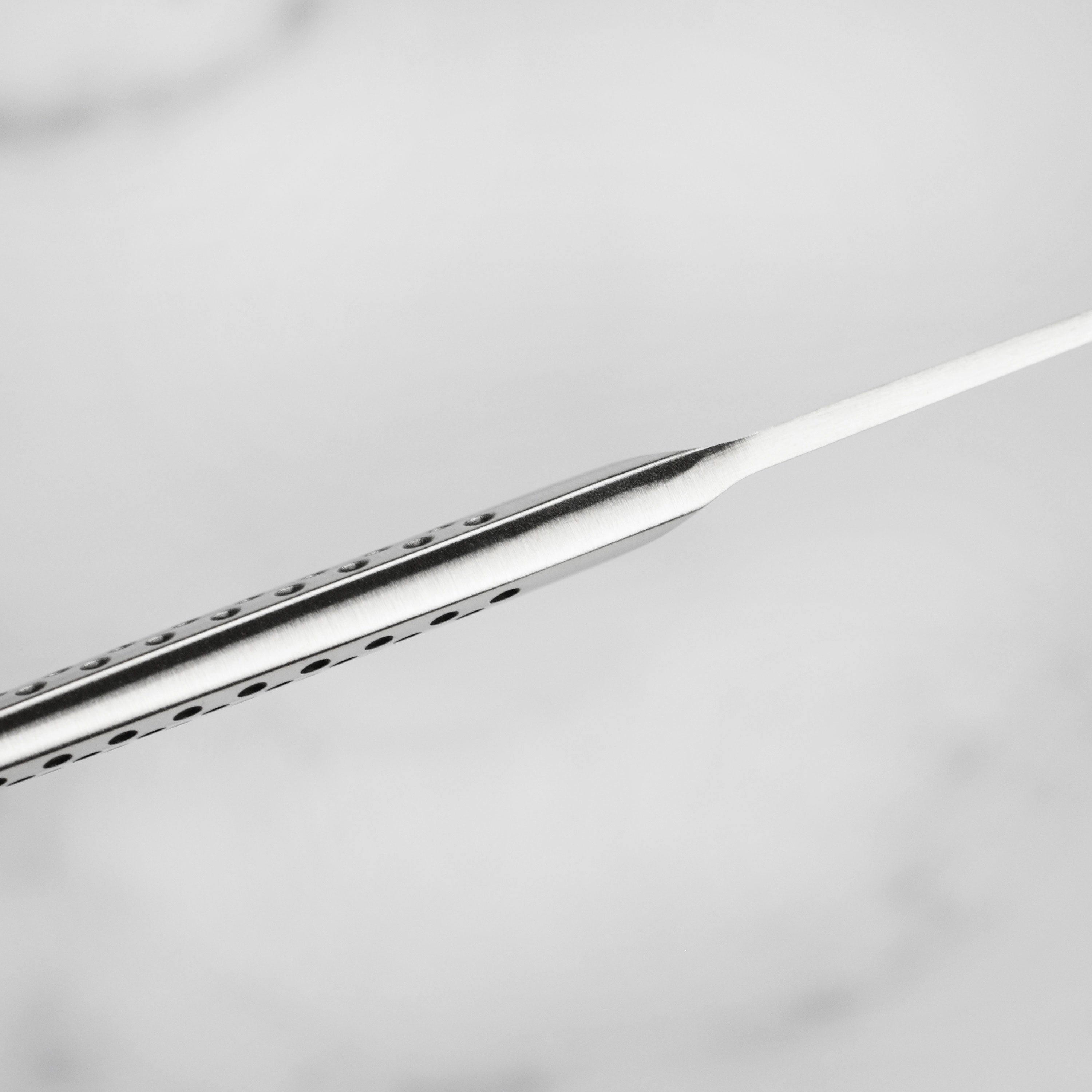 - 10 to 15° serrated single bevel blade edges are ground on one side; single piece of steel for unsurpassed performance