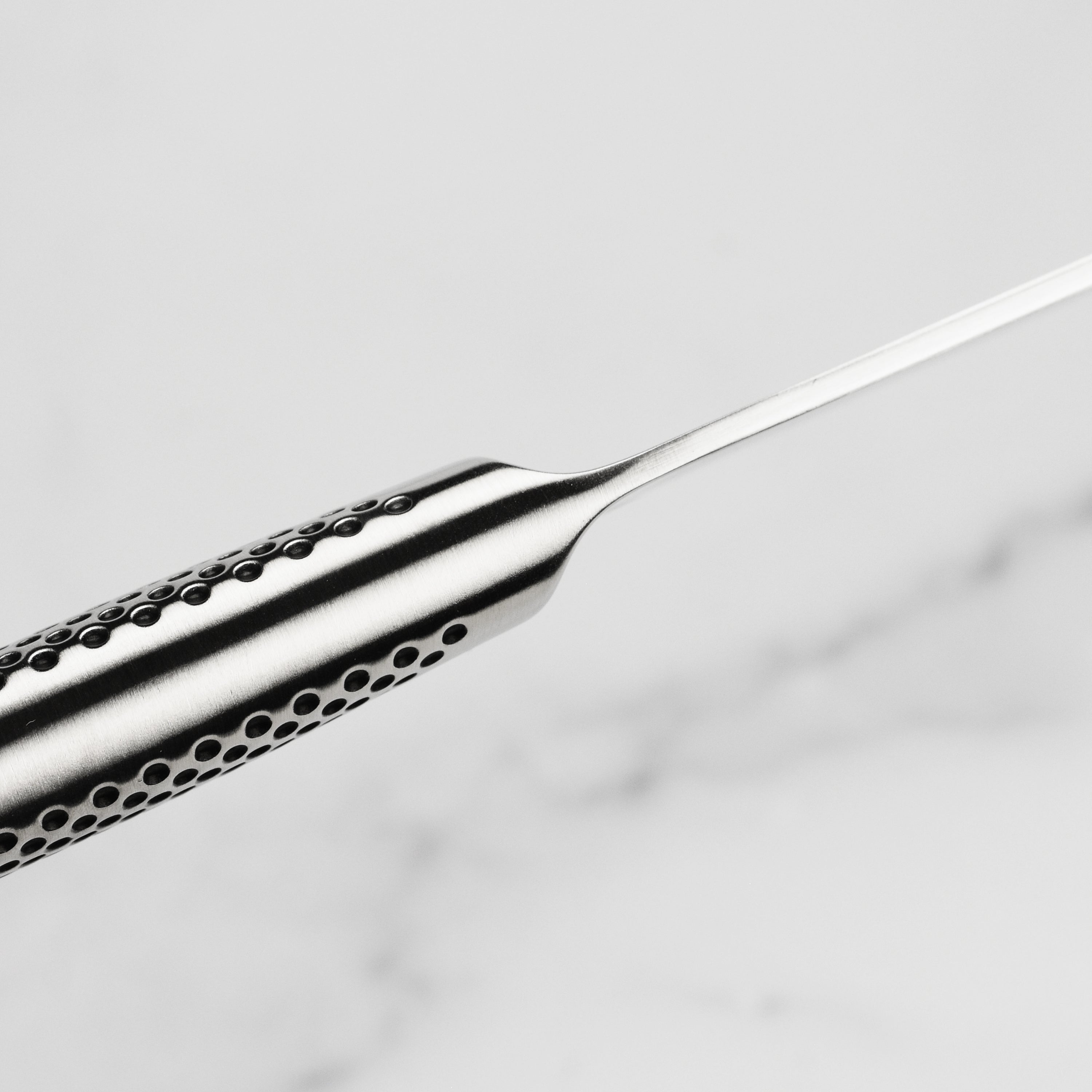 - Stainless steel hygienic handle with signature dimple pattern offering a comfortable, slip-resistant grip