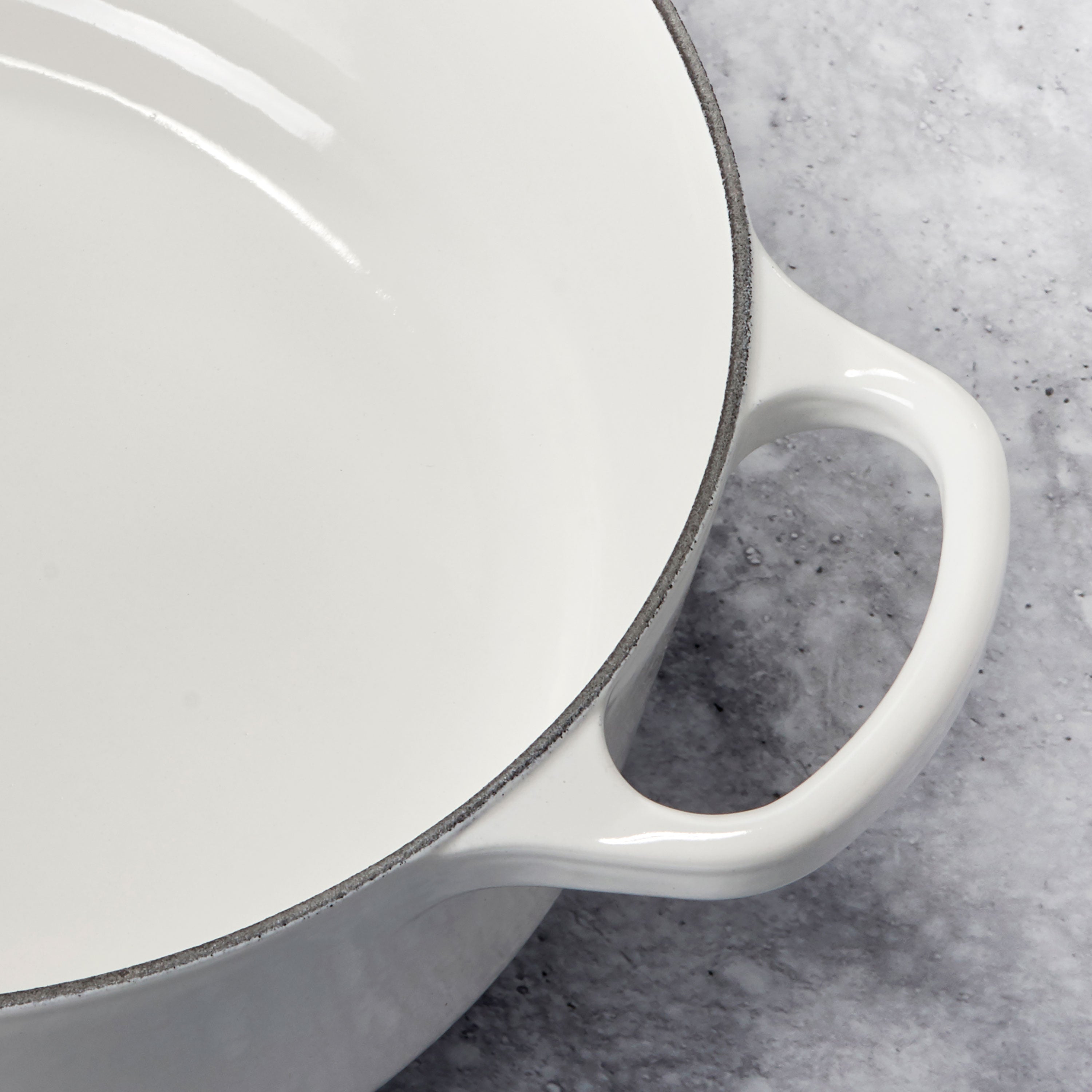The iconic Le Creuset Signature Cast Iron Oval Dutch Oven is indispensable in the kitchens of home cooks and professional chefs alike. The oval shape is particularly suited for larger cuts of meat, whole chickens and for baking oval-shaped loaves of bread. Expertly crafted from enameled cast iron, the everyday versatility of the Dutch oven makes it ideal for everything from slow-cooking and braising to roasting, baking, frying chicken, beef stew, no-knead bread, roast chicken, mashed potatoes, soups, stews and more. The white-colored smooth interior enamel allows easy monitoring of cooking progress. Individually crafted by French artisans from the finest quality materials since 1925, the Le Creuset Dutch oven is beloved for its perfected design and exceptional heat retention that locks in moisture and flavor to produce superior results from stove to oven to table. Designed for generations of durability, the easy-to-clean vibrant porcelain enamel requires no seasoning and minimizes sticking.