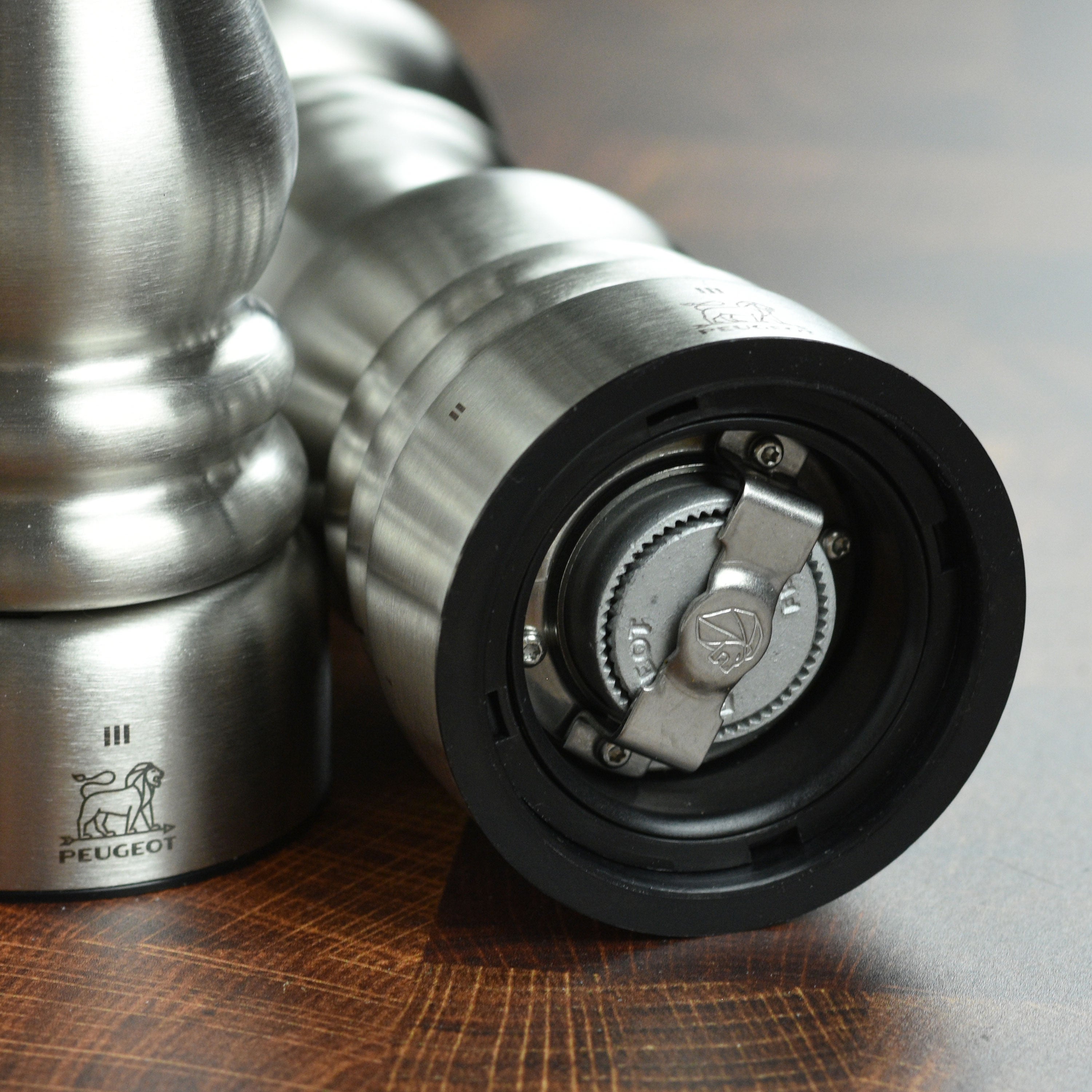 - The pepper mechanism is made of case hardened steel is designed to crack the peppercorns before the actual grinding process, equipped with a helix-shaped double row of teeth that guide and hold the peppercorns for a perfect grind
