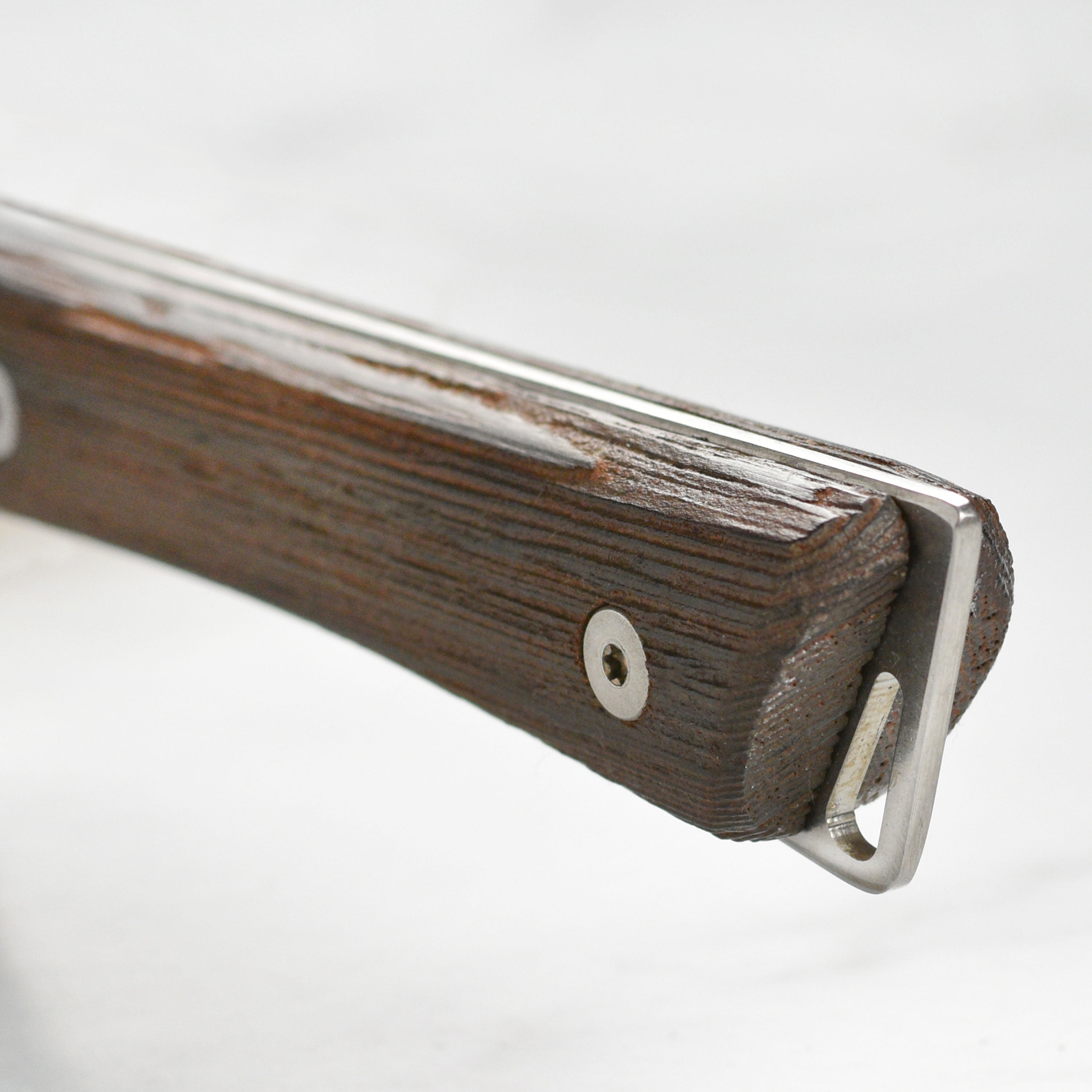 - Heritage finish blade hides scratches and gives a rustic look that just improves with age
