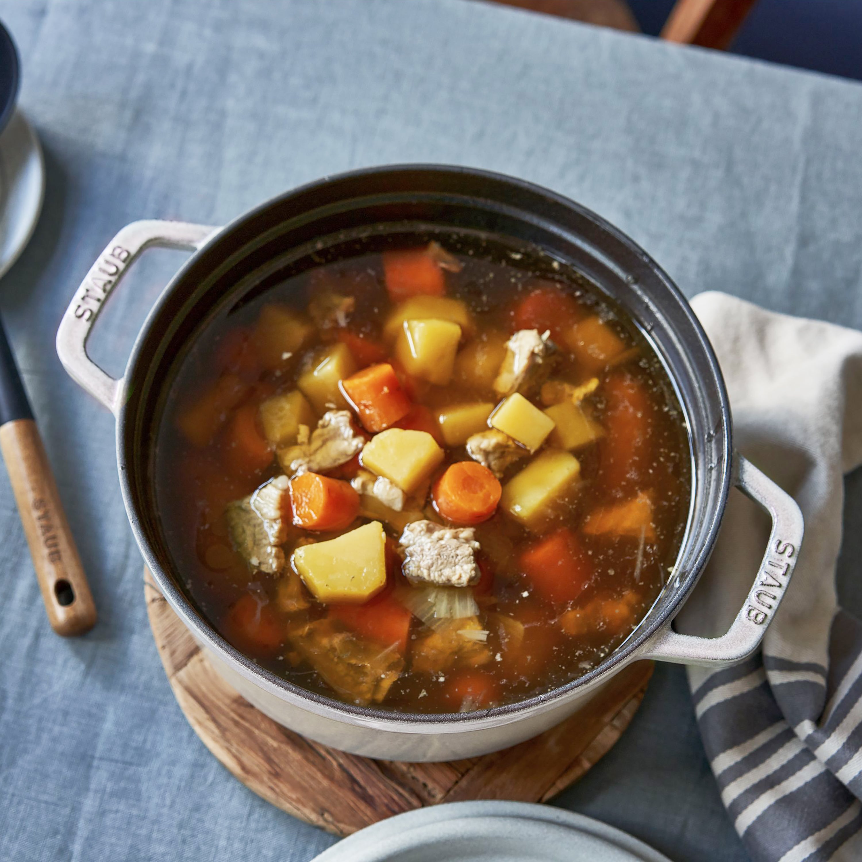 The Staub 7-quart Round Dutch Oven, also known as a Staub Cocotte, is the ideal size for cooking hearty stews, roasts, soups, casseroles and other one-pot classics. The incredible heat retention and even heat diffusion gives your food consistent texture and taste in every bite. The Staub dutch oven features special spikes on the under-side of the lid, which aid in continuous, natural basting to produce flavorful foods. The extra-heavy lid fits tightly and seals in moisture for juicy and tender results. Staub's innovative multi-coat enamel is indestructible, it will never chip or discolor, keeping your sure-to-be family heirloom looking like new after every use. Nickel knob is oven safe up to 500°F. Made in France with a lifetime warranty.
