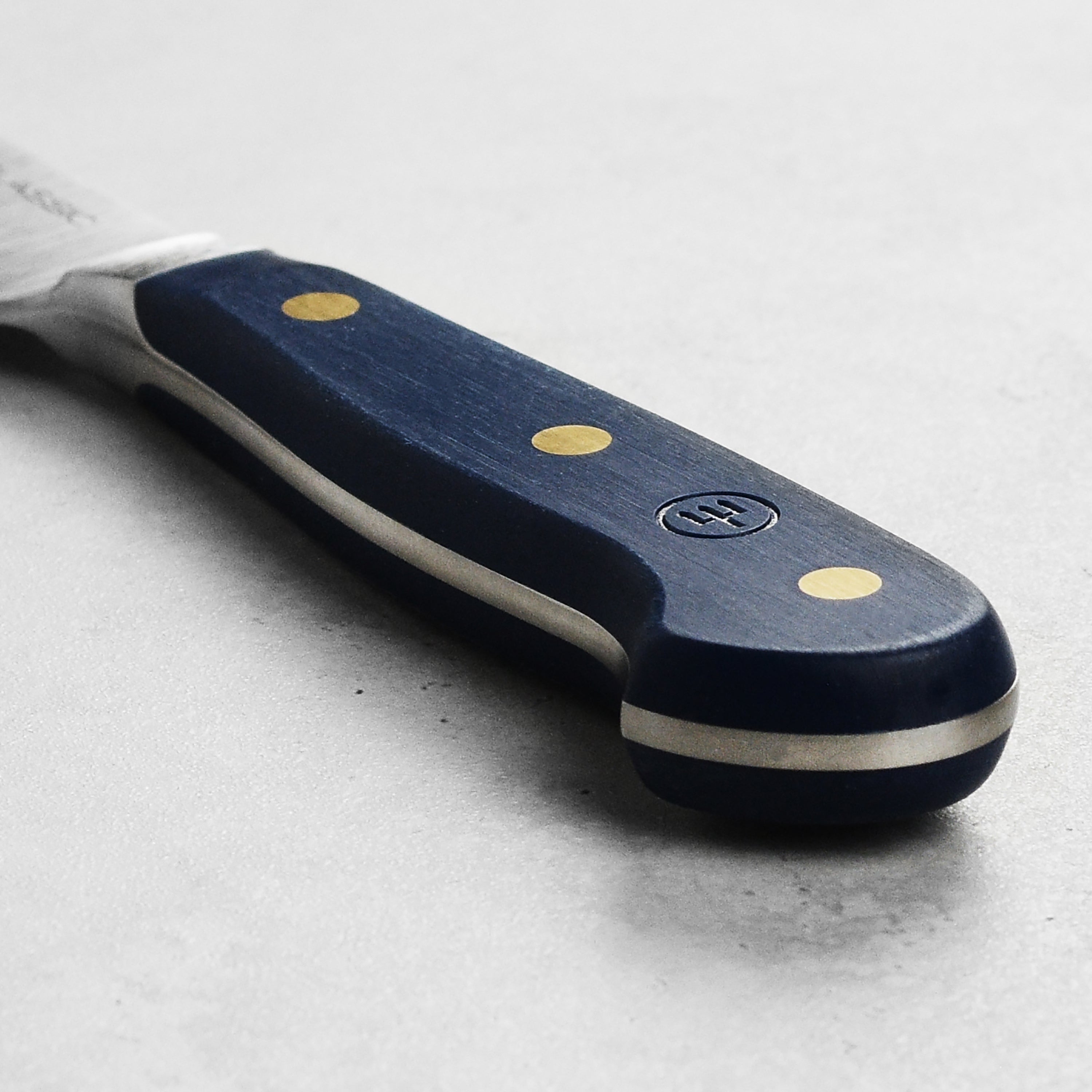 - Brass triple-riveted Polyoxymethylene (POM) handle resists fading and discoloration