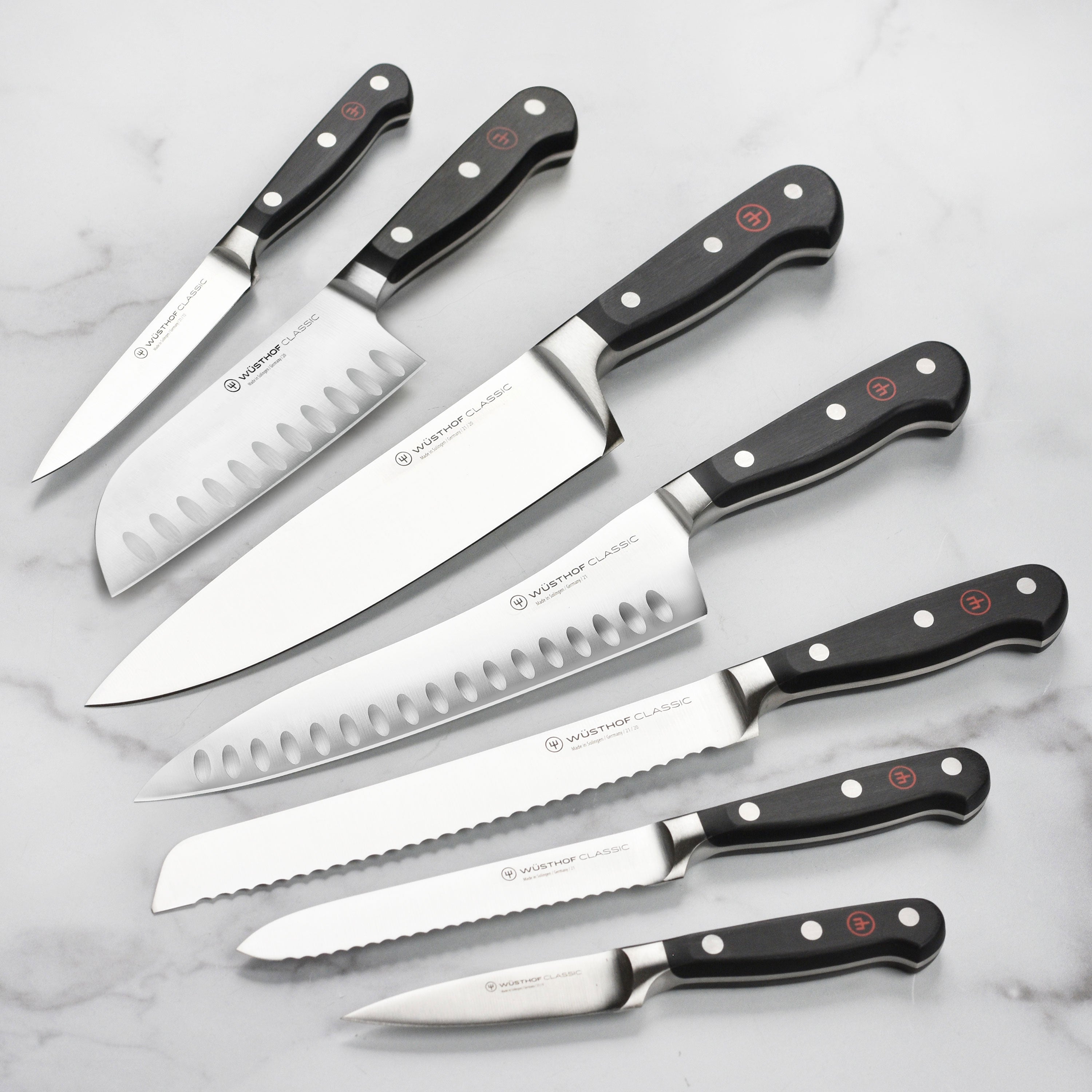 Wusthof Classic full-tang knives are precision forged from a single piece of exclusive Wusthof high-carbon stainless steel. The handle design is made of a highly durable synthetic material known as Polyoxymethylene (POM), which features a tighter molecular structure to resist fading and discoloration. Each Wusthof Classic knife features a computer controlled cutting edge to ensure the final edge of the blade is precise and uniform from the tip to the heel. The Wusthof PEtec angle and tapered cutting edge reduces drag when slicing foods, allowing for seamless and effortless cutting. Each knife blade is completely buffed and polished by hand. Wusthof Classic knives are made in Solingen, Germany with a lifetime warranty.