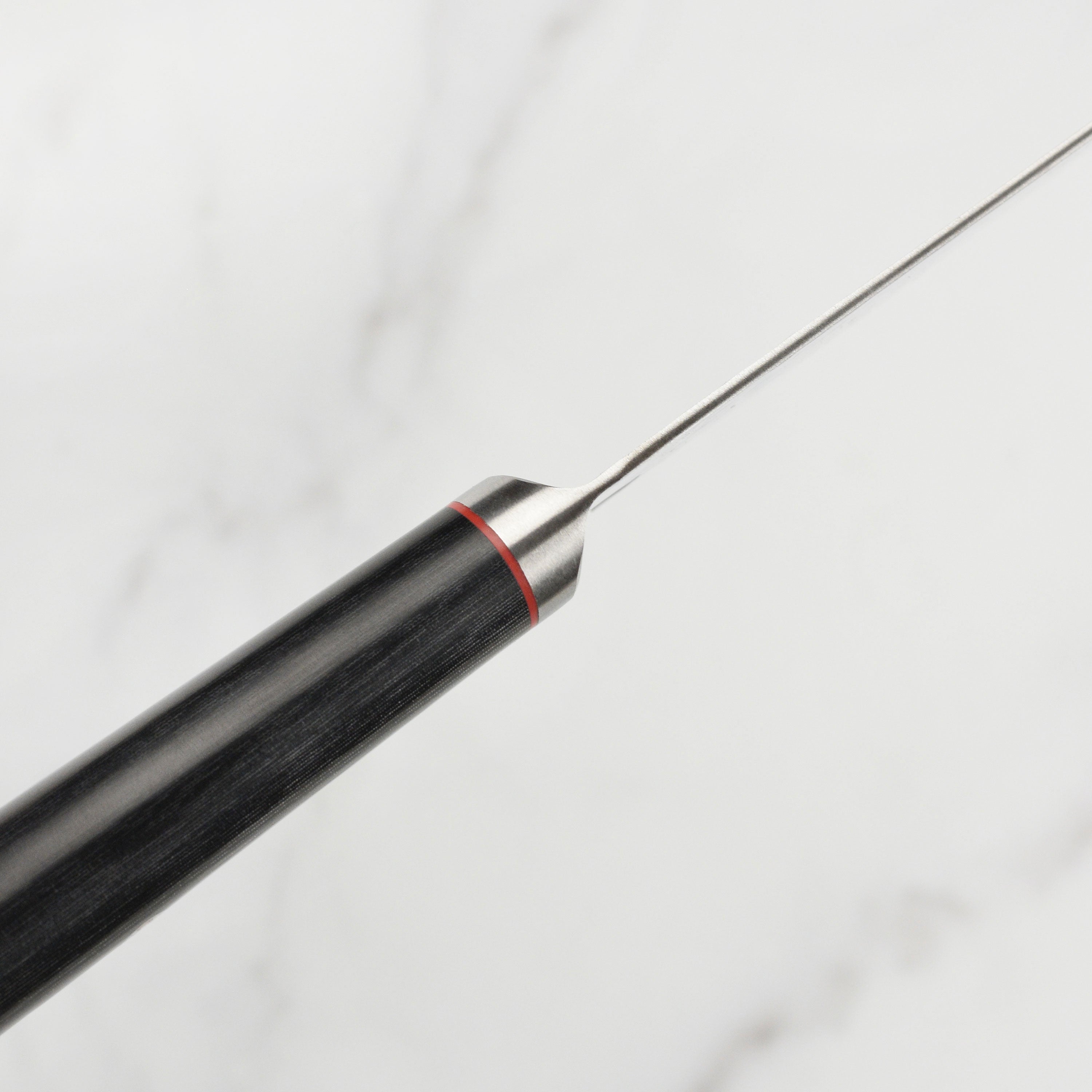 - Traditional Japanese blade hand-honed to a 9 to 12° angle