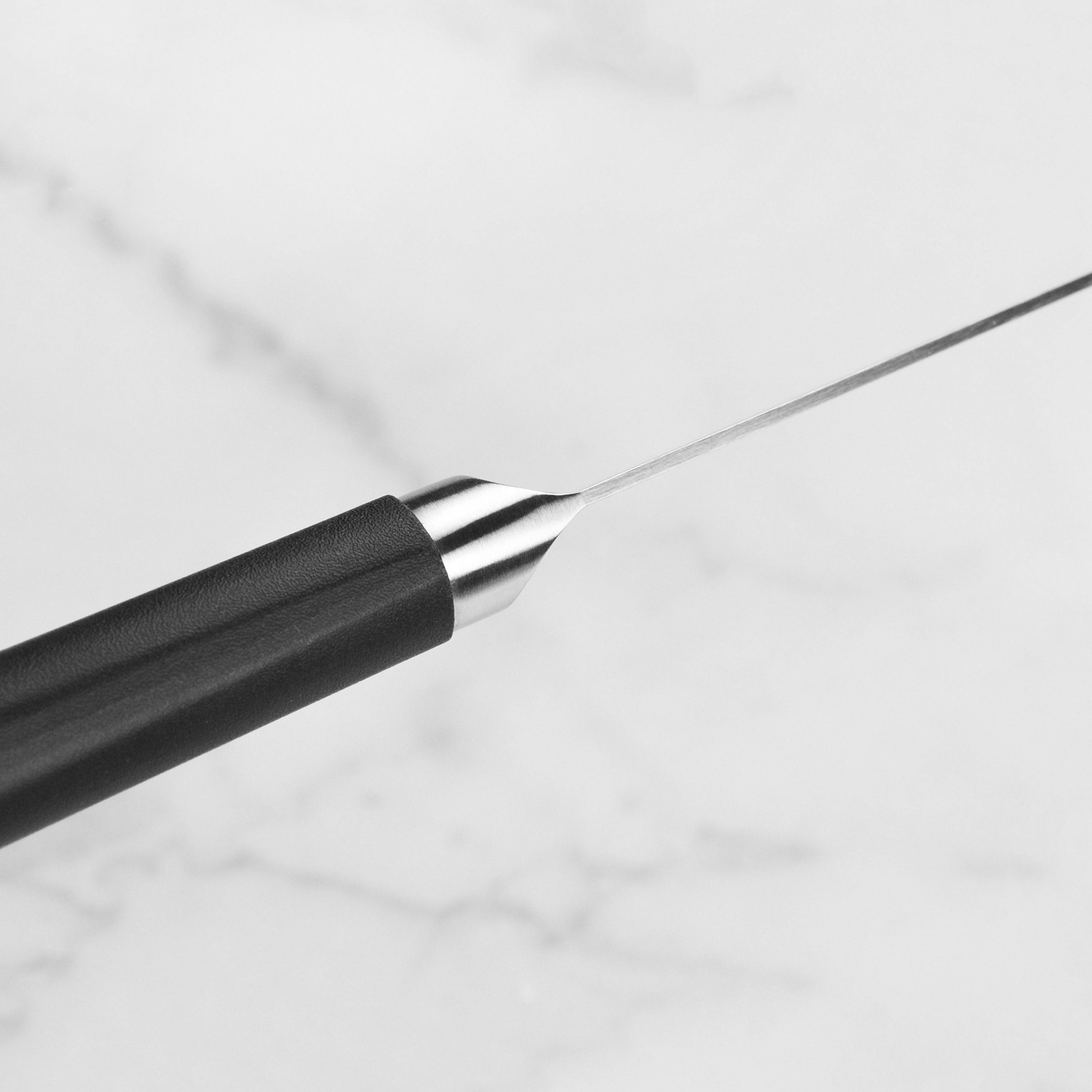 - Traditional Japanese handle design with a textured PP/TPE blend; stainless steel debossed logo